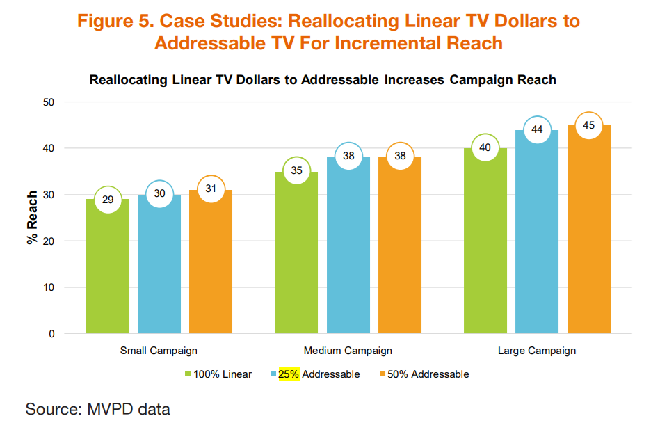 しかし、予算の10%をリニアからMVPDアドレッサブルに、10%をAVoDに移すことで、結果が大幅に改善されます。